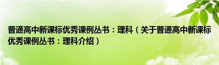 关于普通高中新课标优秀课例丛书:理科到此分享完毕,希望能帮助到您。