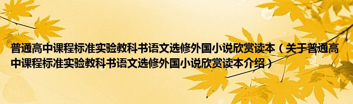 关于普通高中课程标准实验教科书语文选修外国小说欣赏读本到此分享完毕,希望能帮助到您。