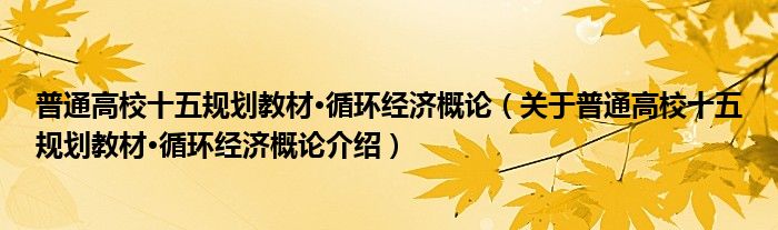 关于普通高校十五规划教材·循环经济概论到此分享完毕,希望能帮助到您。