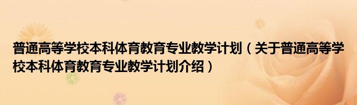 关于普通高等学校本科体育教育专业教学计划到此分享完毕,希望能帮助到您。