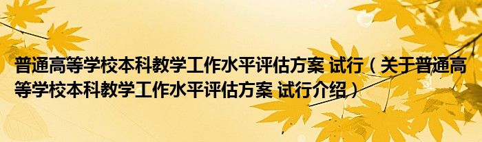 大家好,小夏来为大家解答以上的问题。普通高等学校本科教学工作水平评估方案 试行,关于普通高等学校本科教学工作水平评估方案 试行介绍这个很多人还不知道,现在让我们一起来看看吧!