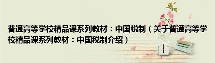 关于普通高等学校精品课系列教材:中国税制到此分享完毕,希望能帮助到您。