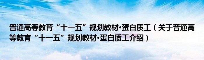 关于普通高等教育“十一五”规划教材·蛋白质工到此分享完毕,希望能帮助到您。