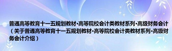 1、 《普通高等教育十一五规划教材·高等院校会计类教材系列·高级财务会计》是2009年科学出版社出版的图书。