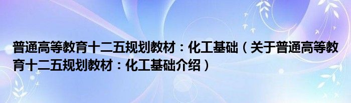 关于普通高等教育十二五规划教材:化工基础到此分享完毕,希望能帮助到您。