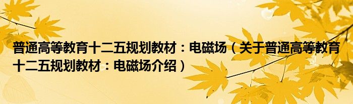 关于普通高等教育十二五规划教材:电磁场到此分享完毕,希望能帮助到您。