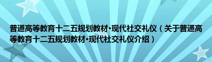 关于普通高等教育十二五规划教材·现代社交礼仪到此分享完毕,希望能帮助到您。