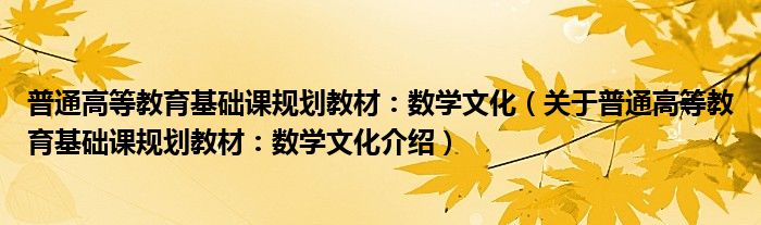 1、 《普通高等教育基础课规划教材:数学文化(第2版)》是由大家熟知的许多数学史实来阐明数学的思想、方法与文化意义,特别是介绍了解析几何、微积分、概率论与数理统计、线性代数等大学生必修的大学数学内容的思想、方法与文化影响,以期加深对这些经典数学内容的理解;二是在众多数学事实的基础上。