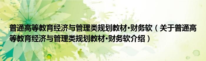 关于普通高等教育经济与管理类规划教材·财务软到此分享完毕,希望能帮助到您。