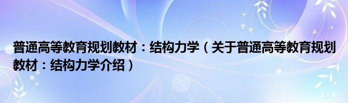 大家好,小夏来为大家解答以上的问题。普通高等教育规划教材:结构力学,关于普通高等教育规划教材:结构力学介绍这个很多人还不知道,现在让我们一起来看看吧!