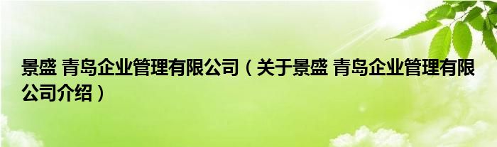 关于景盛 青岛企业管理有限公司到此分享完毕,希望能帮助到您。