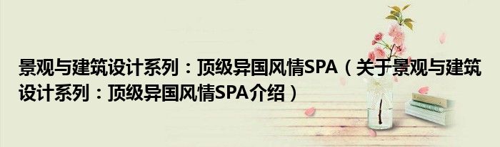 大家好,小夏来为大家解答以上的问题。景观与建筑设计系列:顶级异国风情SPA,关于景观与建筑设计系列:顶级异国风情SPA介绍这个很多人还不知道,现在让我们一起来看看吧!