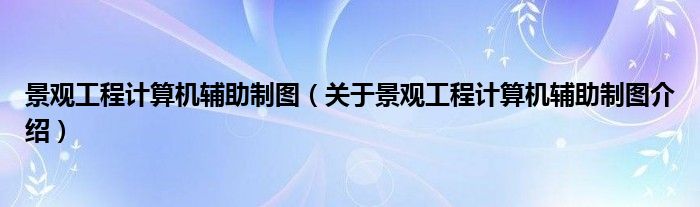 大家好,小夏来为大家解答以上的问题。景观工程计算机辅助制图,关于景观工程计算机辅助制图介绍这个很多人还不知道,现在让我们一起来看看吧!