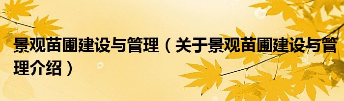 大家好,小夏来为大家解答以上的问题。景观苗圃建设与管理,关于景观苗圃建设与管理介绍这个很多人还不知道,现在让我们一起来看看吧!