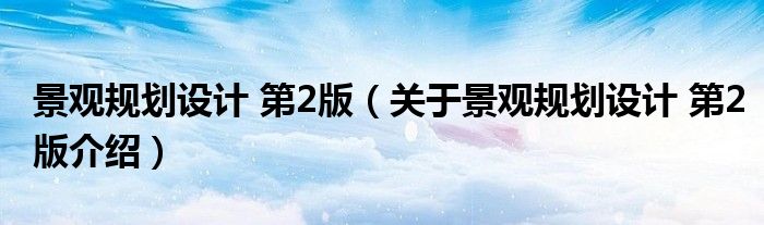 1、 《景观规划设计(第2版)》是2019年1月机械工业出版社出版的图书。