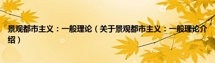 1、 《景观都市主义:一般理论》是2016年1月26日由美国普林斯顿大学出版社出版的图书。
