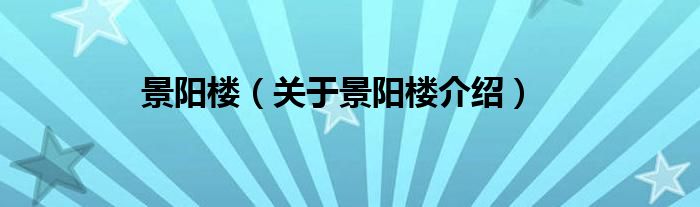 关于景阳楼到此分享完毕,希望能帮助到您。