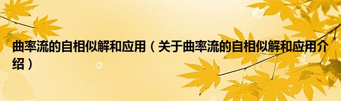 大家好,小夏来为大家解答以上的问题。曲率流的自相似解和应用,关于曲率流的自相似解和应用介绍这个很多人还不知道,现在让我们一起来看看吧!