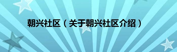 大家好,小夏来为大家解答以上的问题。朝兴社区,关于朝兴社区介绍这个很多人还不知道,现在让我们一起来看看吧!