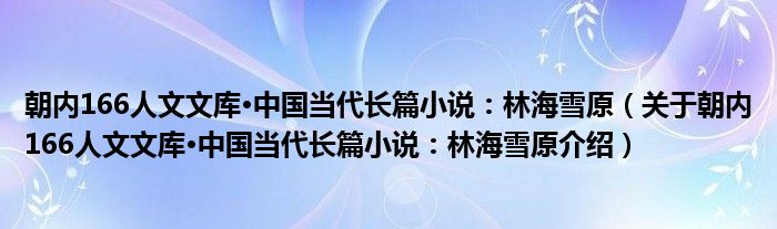 大家好,小夏来为大家解答以上的问题。朝内166人文文库·中国当代长篇小说:林海雪原,关于朝内166人文文库·中国当代长篇小说:林海雪原介绍这个很多人还不知道,现在让我们一起来看看吧!