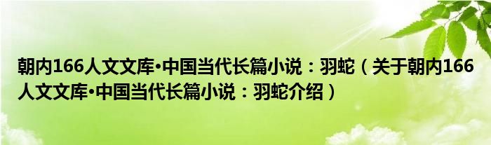 关于朝内166人文文库·中国当代长篇小说:羽蛇到此分享完毕,希望能帮助到您。