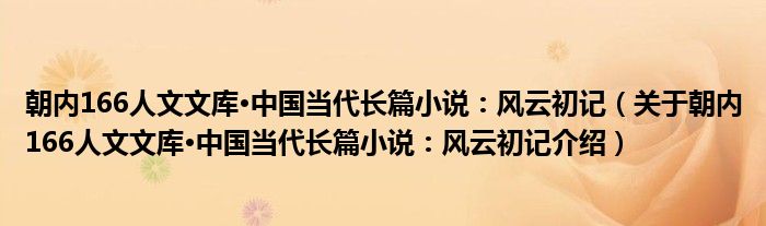 大家好,小夏来为大家解答以上的问题。朝内166人文文库·中国当代长篇小说:风云初记,关于朝内166人文文库·中国当代长篇小说:风云初记介绍这个很多人还不知道,现在让我们一起来看看吧!