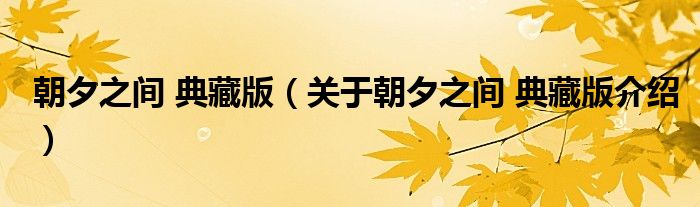 大家好,小夏来为大家解答以上的问题。朝夕之间 典藏版,关于朝夕之间 典藏版介绍这个很多人还不知道,现在让我们一起来看看吧!