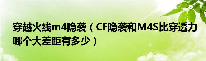 大家好,我是小小根,我来为大家解答以上问题。穿越火线m4隐袭,CF隐袭和M4S比穿透力哪个大差距有多少很多人还不知道,现在让我们一起来看看吧!1、隐袭稍强、但隐袭视野较窄、迷彩感觉好、很难有视觉疲劳、。本文到此讲解完毕了,希望对大家有帮助。
