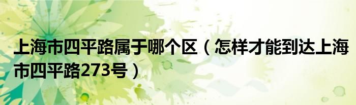 大家好,我是小小根,我来为大家解答以上问题。上海市四平路属于哪个区,怎样才能到达上海市四平路273号很多人还不知道,现在让我们一起来看看吧!