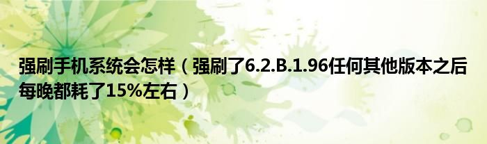 大家好,我是小小根,我来为大家解答以上问题。强刷手机系统会怎样,强刷了6.2.B.1.96任何其他版本之后每晚都耗了15%左右很多人还不知道,现在让我们一起来看看吧!