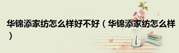 大家好,我是小根根,我来为大家解答以上问题。华锦添家纺怎么样好不好,华锦添家纺怎么样很多人还不知道,现在让我们一起来看看吧!