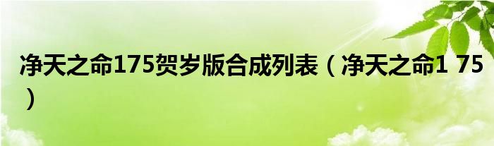大家好,小式来为大家解答以上的问题。净天之命175贺岁版合成列表,净天之命1 75这个很多人还不知道,现在让我们一起来看看吧!