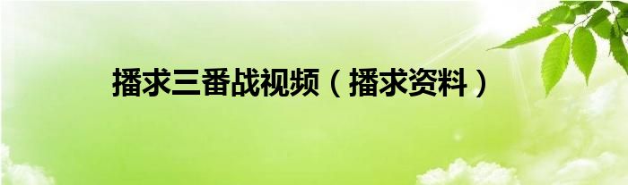 大家好,小式来为大家解答以上的问题。播求三番战视频,播求资料这个很多人还不知道,现在让我们一起来看看吧!