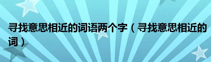 大家好,小式来为大家解答以上的问题。寻找意思相近的词语两个字,寻找意思相近的词这个很多人还不知道,现在让我们一起来看看吧!