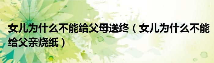 大家好,小式来为大家解答以上的问题。女儿为什么不能给父母送终,女儿为什么不能给父亲烧纸这个很多人还不知道,现在让我们一起来看看吧!
