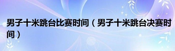 大家好,小式来为大家解答以上的问题。男子十米跳台比赛时间,男子十米跳台决赛时间这个很多人还不知道,现在让我们一起来看看吧!