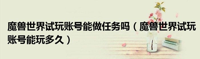 大家好,小式来为大家解答以上的问题。魔兽世界试玩账号能做任务吗,魔兽世界试玩账号能玩多久这个很多人还不知道,现在让我们一起来看看吧!