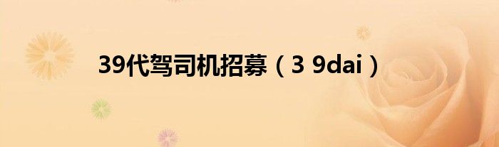 大家好,小式来为大家解答以上的问题。39代驾司机招募,3 9dai这个很多人还不知道,现在让我们一起来看看吧!