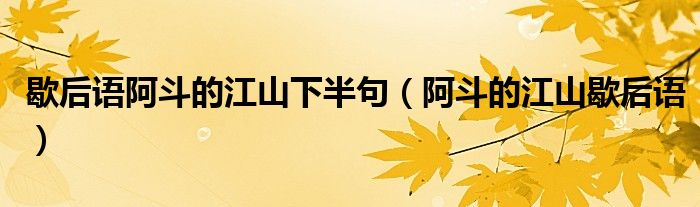 大家好,小式来为大家解答以上的问题。歇后语阿斗的江山下半句,阿斗的江山歇后语这个很多人还不知道,现在让我们一起来看看吧!