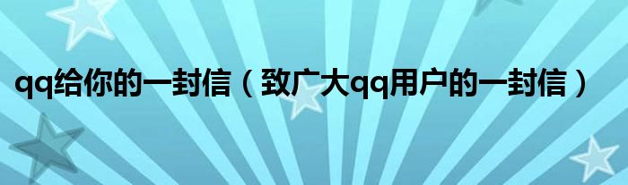 大家好,小式来为大家解答以上的问题。qq给你的一封信,致广大qq用户的一封信这个很多人还不知道,现在让我们一起来看看吧!
