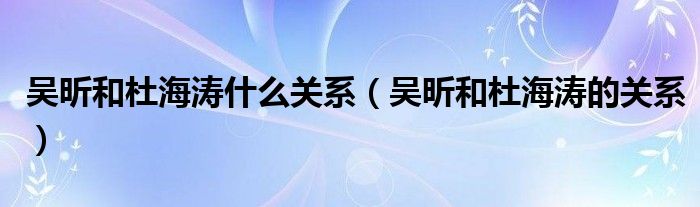 大家好,小式来为大家解答以上的问题。吴昕和杜海涛什么关系,吴昕和杜海涛的关系这个很多人还不知道,现在让我们一起来看看吧!