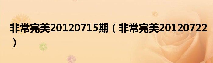 大家好,小式来为大家解答以上的问题。非常完美20120715期,非常完美20120722这个很多人还不知道,现在让我们一起来看看吧!