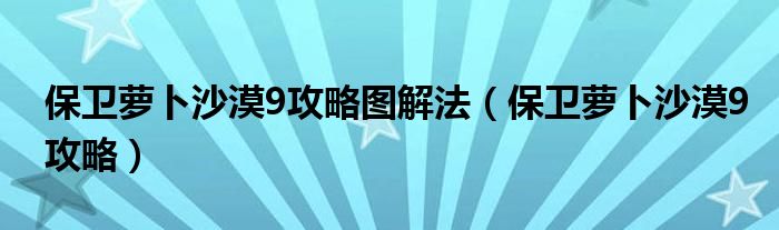大家好,小式来为大家解答以上的问题。保卫萝卜沙漠9攻略图解法,保卫萝卜沙漠9攻略这个很多人还不知道,现在让我们一起来看看吧!