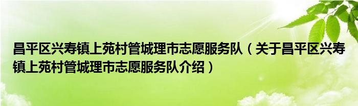 关于昌平区兴寿镇上苑村管城理市志愿服务队到此分享完毕,希望能帮助到您。