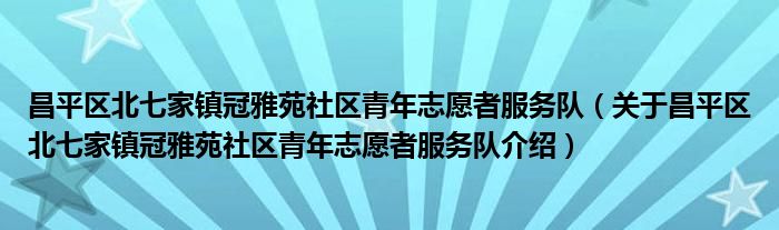 关于昌平区北七家镇冠雅苑社区青年志愿者服务队到此分享完毕,希望能帮助到您。