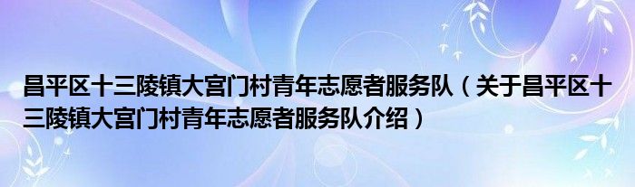 关于昌平区十三陵镇大宫门村青年志愿者服务队到此分享完毕,希望能帮助到您。