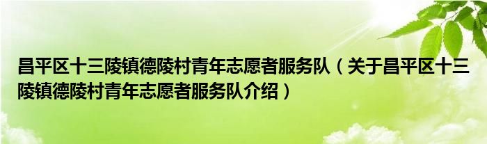 关于昌平区十三陵镇德陵村青年志愿者服务队到此分享完毕,希望能帮助到您。