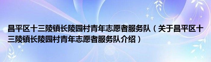关于昌平区十三陵镇长陵园村青年志愿者服务队到此分享完毕,希望能帮助到您。