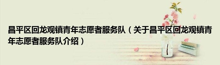 关于昌平区回龙观镇青年志愿者服务队到此分享完毕,希望能帮助到您。