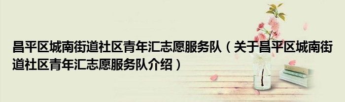 关于昌平区城南街道社区青年汇志愿服务队到此分享完毕,希望能帮助到您。